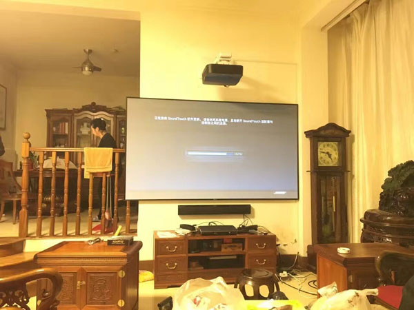 山东济南市100寸抗光幕配合吊装式光峰短焦投影机
